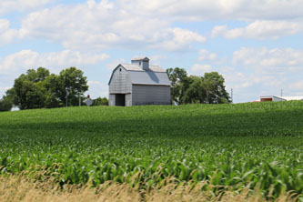Même les maïs pavoisent : le drapeau américain et le drapeau de l'Iowa qui ressemble au drapeau français